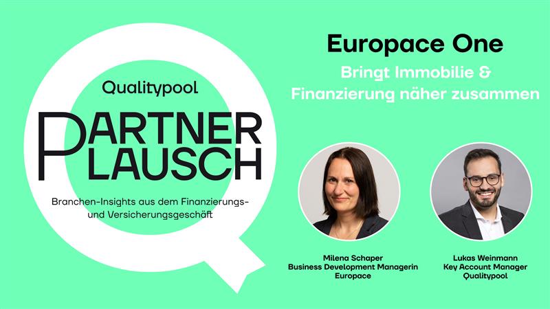 Der Qualitypool Partnerplausch meldet sich zurück aus einer kleinen Sommerpause: In dieser Folge geht es um Europace One – ein innovatives Produkt unseres Schwesterunternehmens, das natürlich auch Qualitypool-Vertriebspartnerinnen und -partner nutzen können. Zu Gast sind Milena Schaper, Business Development Managerin bei Europace und Lukas Weinmann, Key Account Manager bei Qualitypool.